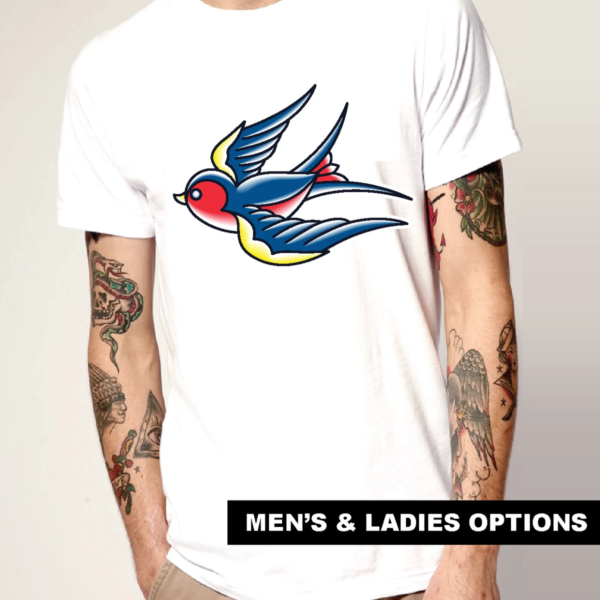 Cool T Shirts Old New School Swallow Tattoo Retro Bird T Shirt Flash Art Gift Ebay